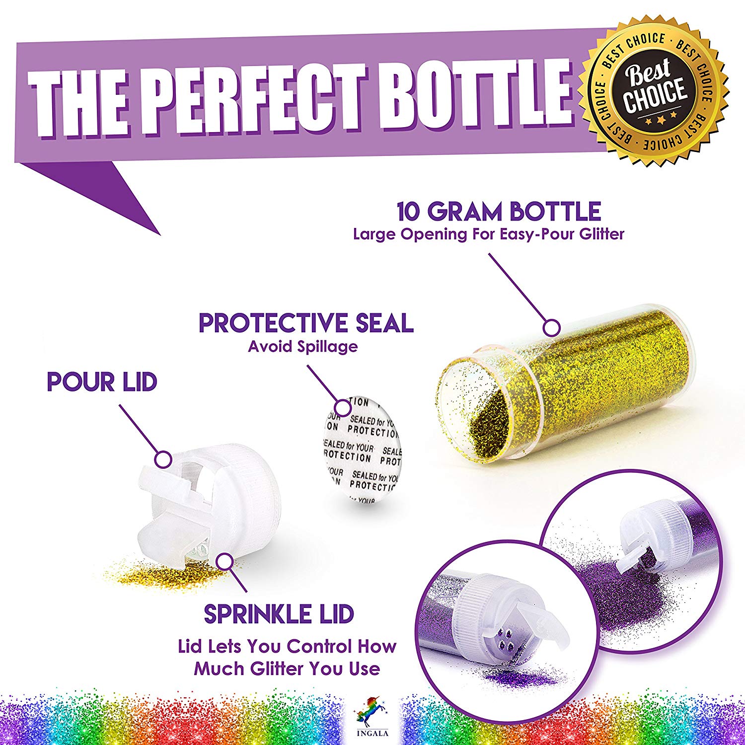 Ingala Pro Grade Glitter Tattoos Kit 24 Extra Fine Glitter Colors Ingala